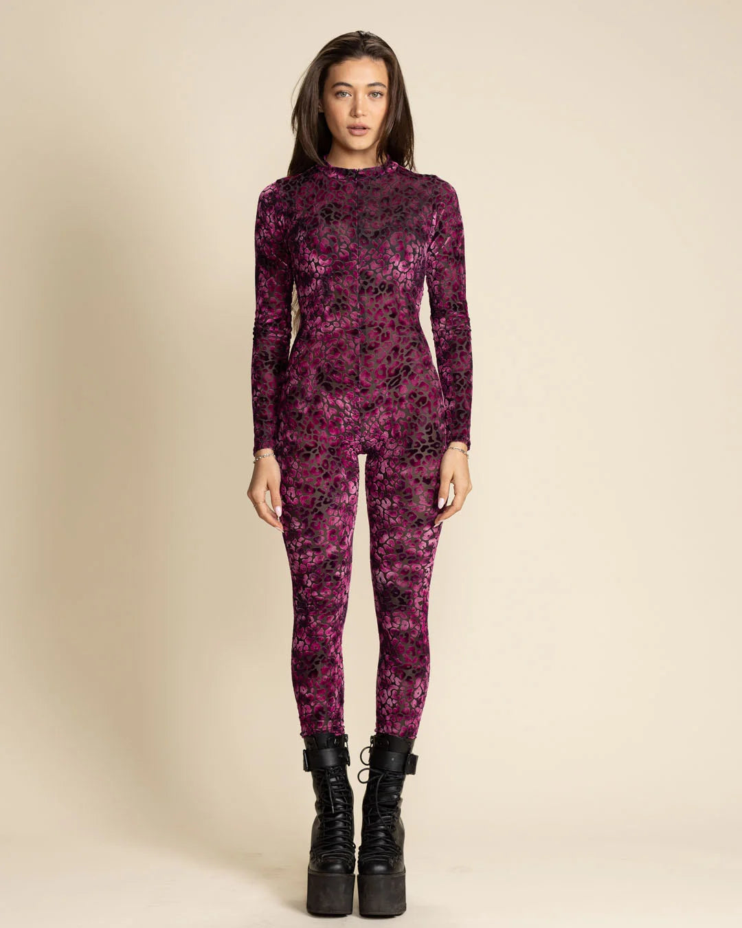 Made for star gazers, rule-breakers, and spotlight-stealers, this Pink Leopard Mesh Bodysuit blends comfort with fierce energy. With a semi-sheer black base and layered hot pink & purple velvet leopard print, this catsuit hugs curves while offering breathable stretch for all-night wear. Each piece is handcrafted to order with love in the USA, perfecting for layering, lounging, or letting your wild side run free.